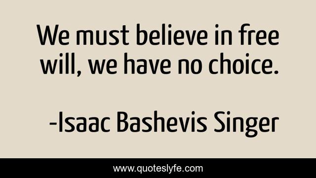This page presents the quote "We must believe in free will, we have no choice.". Author of this quote is Isaac Bashevis Singer. .