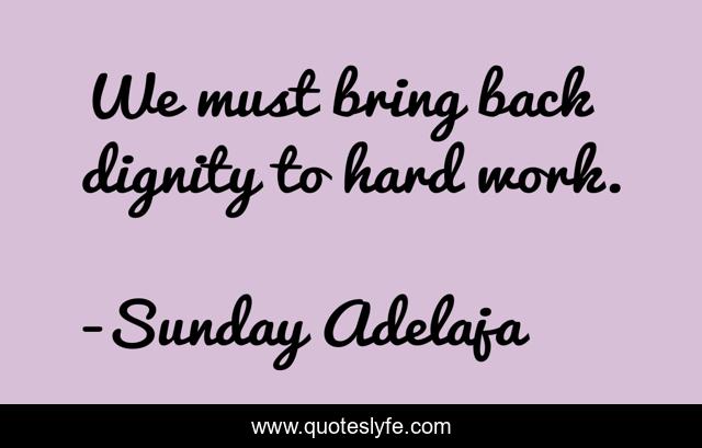 This page presents the quote "We must bring back dignity to hard work.". Author of this quote is Sunday Adelaja. This quote is about dignity, hard-work,.