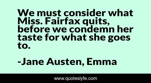 This page presents the quote "We must consider what Miss. Fairfax quits, before we condemn her taste for what she goes to.". Author of this quote is Jane Austen, Emma. This quote is about taste, human-nature,.