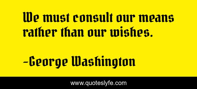 This page presents the quote "We must consult our means rather than our wishes.". Author of this quote is George Washington. This quote is about politics, budgeting,.