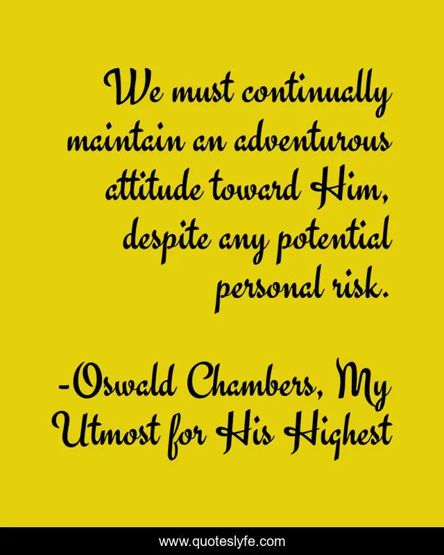 "Oswald Chambers, My Utmost for His Highest Quotes." Quoteslyfe.com, 2025. Fri. 05 Dec. 2025. <https://www.quoteslyfe.com/quote/We-must-continually-maintain-an-adventurous-attitude-179717>.