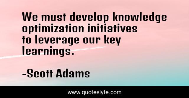 This page presents the quote "We must develop knowledge optimization initiatives to leverage our key learnings.". Author of this quote is Scott Adams. This quote is about leverage, key,.