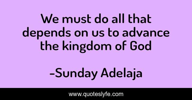 This page presents the quote "We must do all that depends on us to advance the kingdom of God". Author of this quote is Sunday Adelaja. This quote is about kingdom, advance, depend, god, calling, fulfillment, purpose,.
