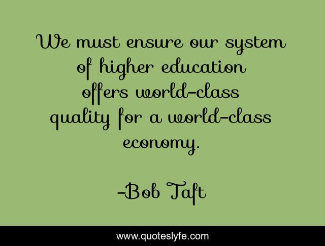 This page presents the quote "We must ensure our system of higher education offers world-class quality for a world-class economy.". Author of this quote is Bob Taft. This quote is about quality, economy,.