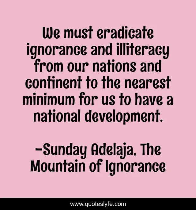 "Sunday Adelaja, The Mountain of Ignorance Quotes." Quoteslyfe.com, 2025. Sat. 06 Dec. 2025. <https://www.quoteslyfe.com/quote/We-must-eradicate-ignorance-and-illiteracy-from-31003>.