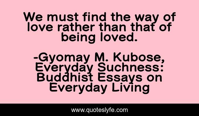 This page presents the quote "We must find the way of love rather than that of being loved.". Author of this quote is Gyomay M. Kubose, Everyday Suchness: Buddhist Essays on Everyday Living. This quote is about buddhism, love, being-loved-by-others, affection, gyomay-kubose,.