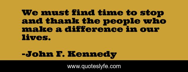 This page presents the quote "We must find time to stop and thank the people who make a difference in our lives.". Author of this quote is John F. Kennedy. .