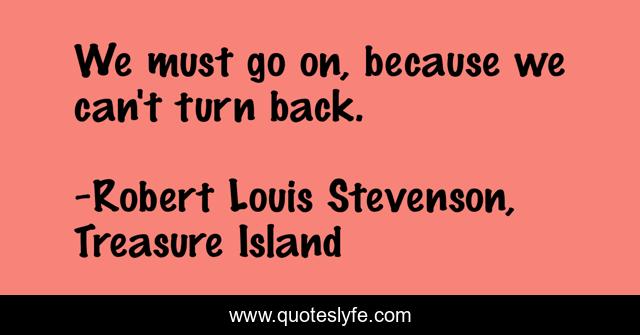 This page presents the quote "We must go on, because we can't turn back.". Author of this quote is Robert Louis Stevenson, Treasure Island. This quote is about growth, strength, experience,.
