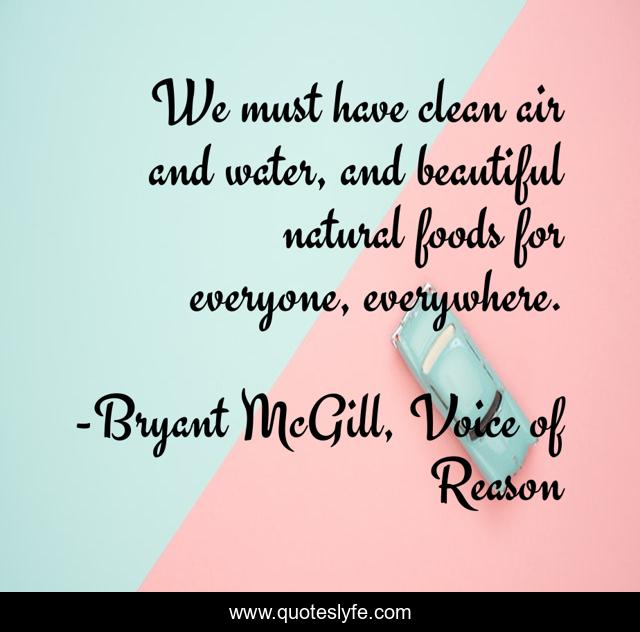 This page presents the quote "We must have clean air and water, and beautiful natural foods for everyone, everywhere.". Author of this quote is Bryant McGill, Voice of Reason. This quote is about environment, clear-conscience, beautiful-creatures,.