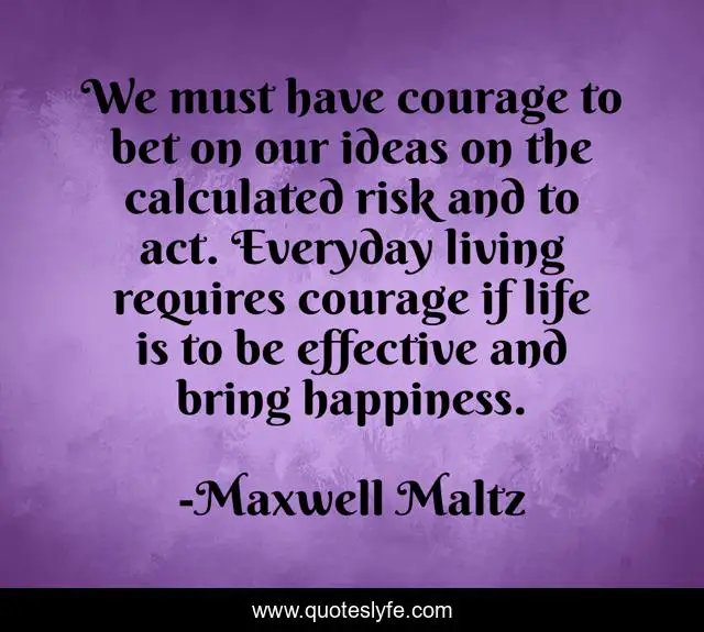 This page presents the quote "We must have courage to bet on our ideas on the calculated risk and to act. Everyday living requires courage if life is to be effective and bring happiness.". Author of this quote is Maxwell Maltz. .