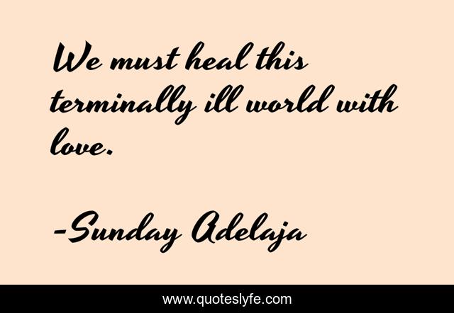 This page presents the quote "We must heal this terminally ill world with love.". Author of this quote is Sunday Adelaja. .