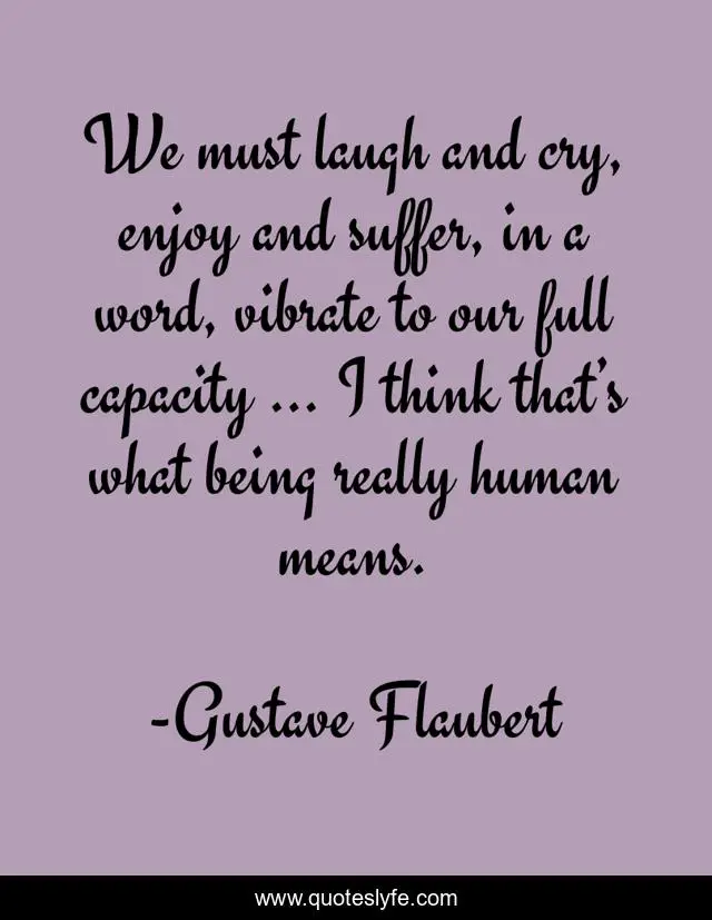 This page presents the quote "We must laugh and cry, enjoy and suffer, in a word, vibrate to our full capacity … I think that’s what being really human means.". Author of this quote is Gustave Flaubert. This quote is about life, humanity,.