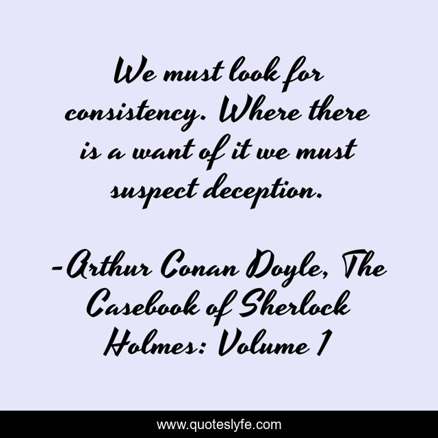 This page presents the quote "We must look for consistency. Where there is a want of it we must suspect deception.". Author of this quote is Arthur Conan Doyle, The Casebook of Sherlock Holmes: Volume 1. .
