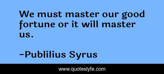 "Publilius Syrus Quotes." Quoteslyfe.com, 2025. Sat. 06 Dec. 2025. <https://www.quoteslyfe.com/quote/We-must-master-our-good-fortune-or-270330>.