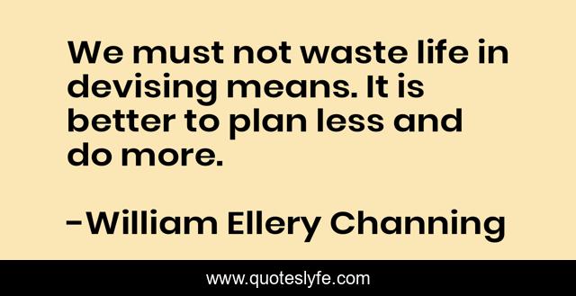 This page presents the quote "We must not waste life in devising means. It is better to plan less and do more.". Author of this quote is William Ellery Channing. This quote is about going, getting,.