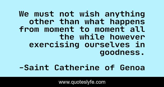 This page presents the quote "We must not wish anything other than what happens from moment to moment all the while however exercising ourselves in goodness.". Author of this quote is Saint Catherine of Genoa. .