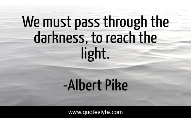 This page presents the quote "We must pass through the darkness, to reach the light.". Author of this quote is Albert Pike. This quote is about science, truth-of-life, hope, inspirational, enthusiasm,.
