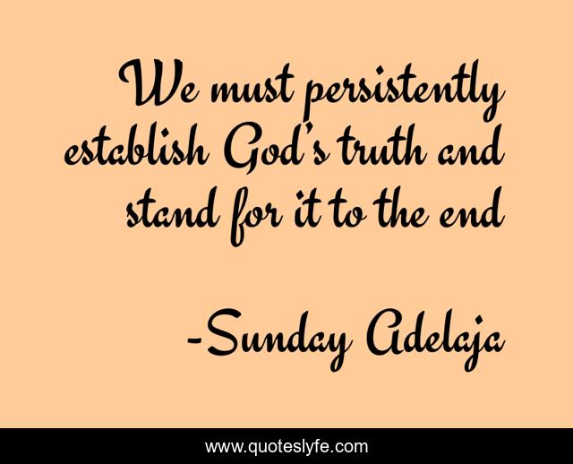 This page presents the quote "We must persistently establish God’s truth and stand for it to the end". Author of this quote is Sunday Adelaja. This quote is about prosperity, end, wealth, money, riches, stand, truth, god, truth-of-life,.