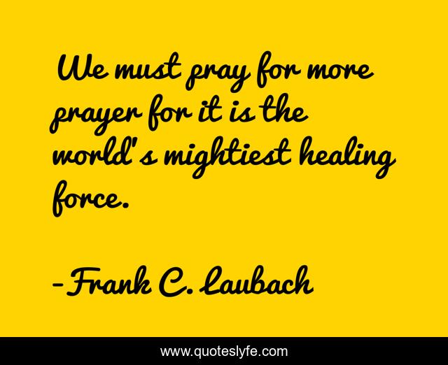 This page presents the quote "We must pray for more prayer for it is the world's mightiest healing force.". Author of this quote is Frank C. Laubach. .