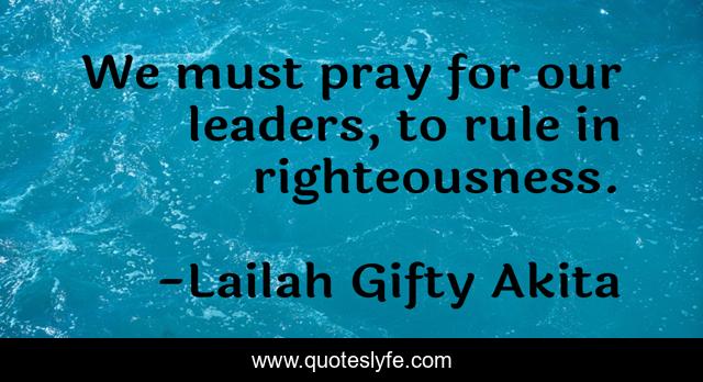 This page presents the quote "We must pray for our leaders, to rule in righteousness.". Author of this quote is Lailah Gifty Akita. This quote is about inspiring, intercessory-prayer, leaders, government, pray, authority, nations, politicians,.
