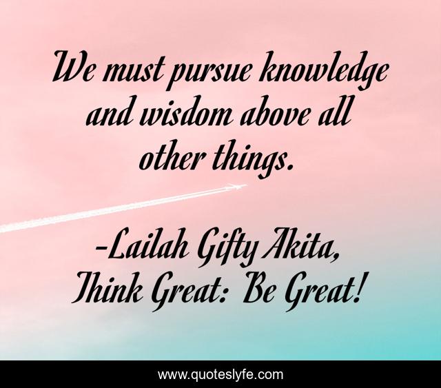"Lailah Gifty Akita, Think Great: Be Great! Quotes." Quoteslyfe.com, 2025. Sun. 07 Dec. 2025. <https://www.quoteslyfe.com/quote/We-must-pursue-knowledge-and-wisdom-above-92781>.