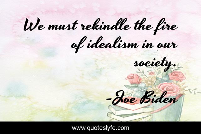 This page presents the quote "We must rekindle the fire of idealism in our society.". Author of this quote is Joe Biden. This quote is about fire, idealism,.