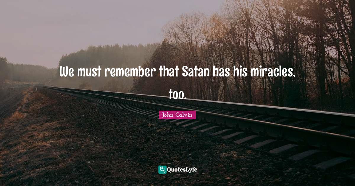 This page presents the quote "We must remember that Satan has his miracles, too.". Author of this quote is John Calvin. This quote is about christian inspirational, remember, satan, miracle,.
