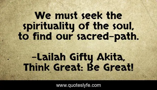 "Lailah Gifty Akita, Think Great: Be Great! Quotes." Quoteslyfe.com, 2025. Tue. 09 Dec. 2025. <https://www.quoteslyfe.com/quote/We-must-seek-the-spirituality-of-the-94998>.