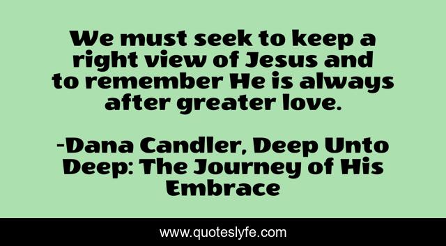 This page presents the quote "We must seek to keep a right view of Jesus and to remember He is always after greater love.". Author of this quote is Dana Candler, Deep Unto Deep: The Journey of His Embrace. This quote is about right, love, remember, jesus, seek, affection,.