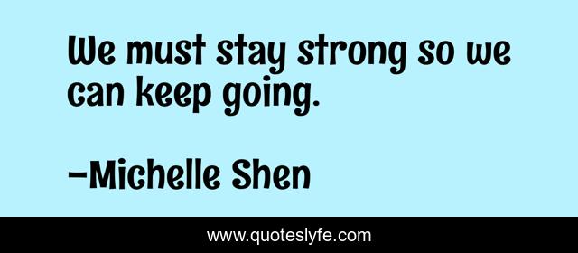 This page presents the quote "We must stay strong so we can keep going.". Author of this quote is Michelle Shen. This quote is about keep-going, strong,.