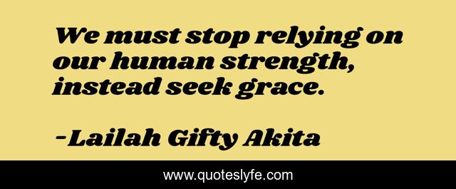 This page presents the quote "We must stop relying on our human strength, instead seek grace.". Author of this quote is Lailah Gifty Akita. This quote is about christian, saved-souls, sins, human-strength, forgiveness, grace,.