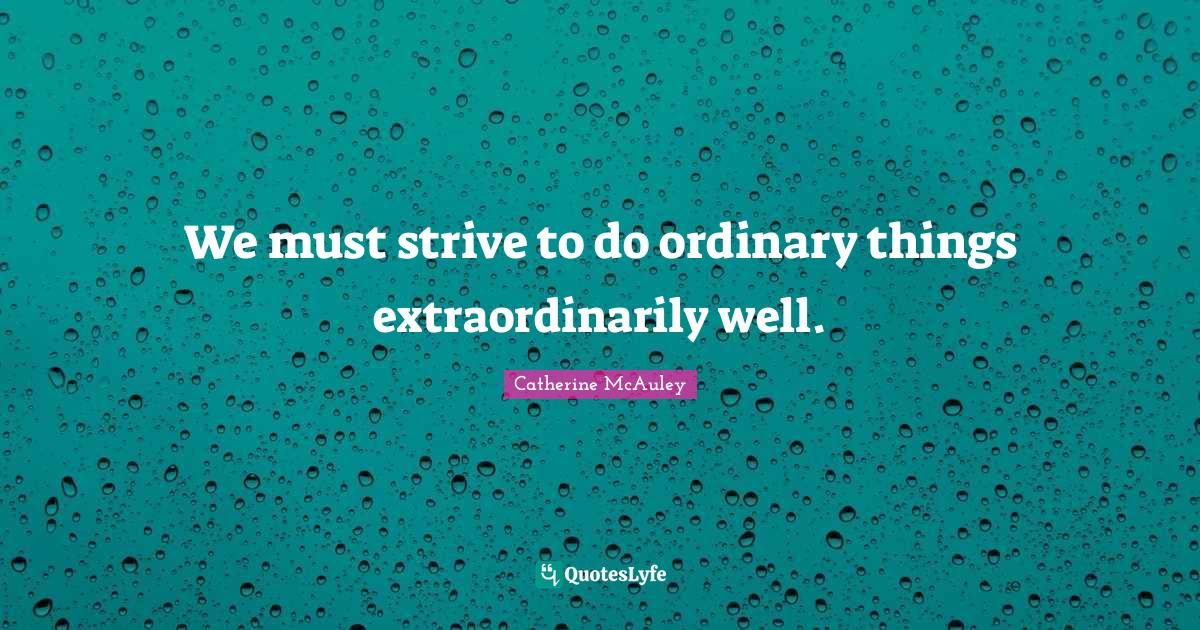 This page presents the quote "We must strive to do ordinary things extraordinarily well.". Author of this quote is Catherine McAuley. This quote is about ordinary things, ordinary, strive,.