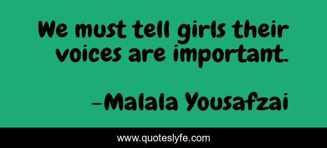 "Malala Yousafzai Quotes." Quoteslyfe.com, 2025. Sat. 06 Dec. 2025. <https://www.quoteslyfe.com/quote/We-must-tell-girls-their-voices-are-295706>.