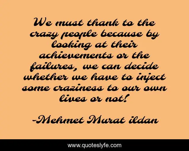 "Mehmet Murat ildan Quotes." Quoteslyfe.com, 2025. Tue. 09 Dec. 2025. <https://www.quoteslyfe.com/quote/We-must-thank-to-the-crazy-people-213089>.