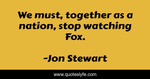 This page presents the quote "We must, together as a nation, stop watching Fox.". Author of this quote is Jon Stewart. This quote is about politics, television,.