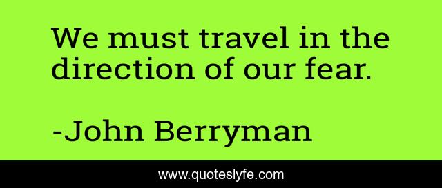 This page presents the quote "We must travel in the direction of our fear.". Author of this quote is John Berryman. .