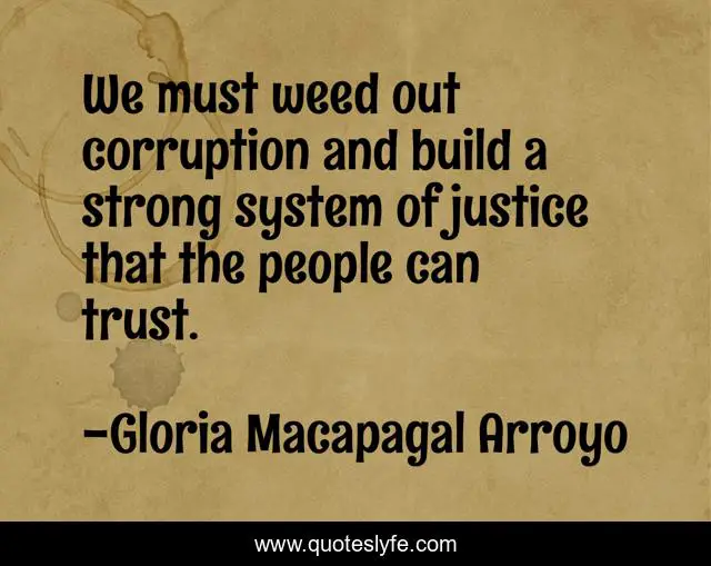"Gloria Macapagal Arroyo Quotes." Quoteslyfe.com, 2025. Fri. 05 Dec. 2025. <https://www.quoteslyfe.com/quote/We-must-weed-out-corruption-and-build-315447>.