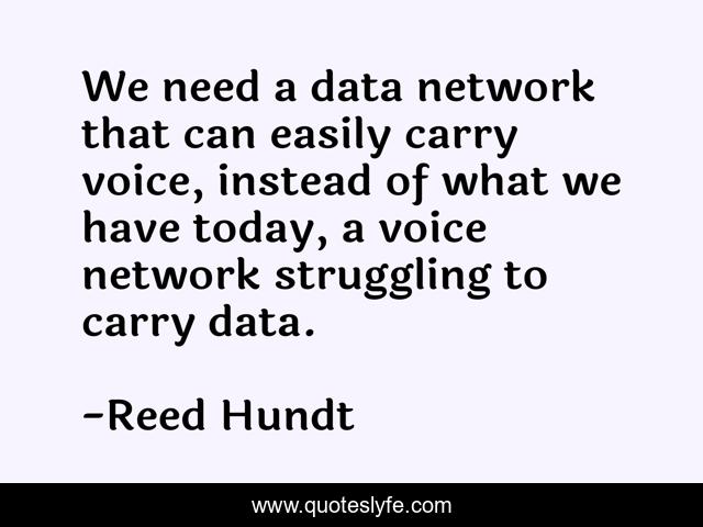 This page presents the quote "We need a data network that can easily carry voice, instead of what we have today, a voice network struggling to carry data.". Author of this quote is Reed Hundt. This quote is about voice, data, today,.