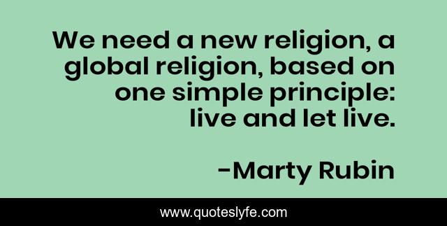 This page presents the quote "We need a new religion, a global religion, based on one simple principle: live and let live.". Author of this quote is Marty Rubin. This quote is about live-and-let-live, religion, a-new-religion, tolerance,.