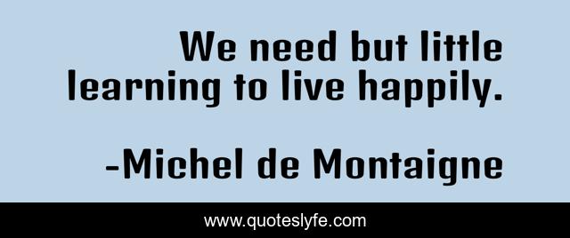 This page presents the quote "We need but little learning to live happily.". Author of this quote is Michel de Montaigne. This quote is about life, happiness, learning,.