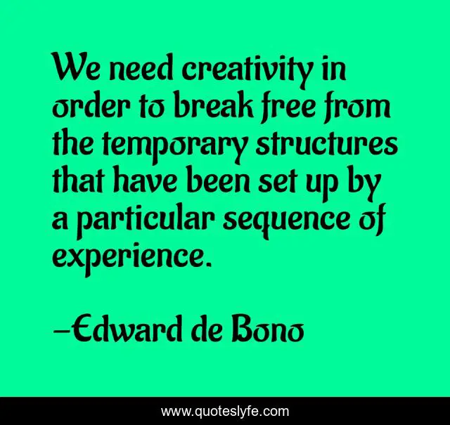 This page presents the quote "We need creativity in order to break free from the temporary structures that have been set up by a particular sequence of experience.". Author of this quote is Edward de Bono. .