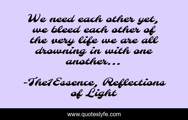 "The1Essence, Reflections of Light Quotes." Quoteslyfe.com, 2025. Fri. 05 Dec. 2025. <https://www.quoteslyfe.com/quote/We-need-each-other-yet-we-bleed-158137>.