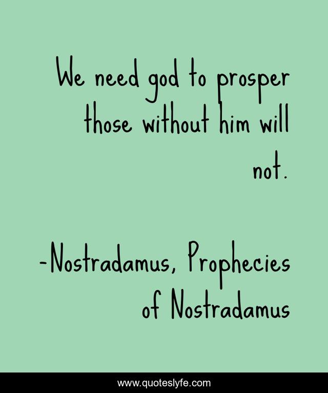 This page presents the quote "We need god to prosper those without him will not.". Author of this quote is Nostradamus, Prophecies of Nostradamus. .
