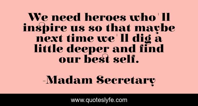 "Madam Secretary Quotes." Quoteslyfe.com, 2025. Sat. 06 Dec. 2025. <https://www.quoteslyfe.com/quote/We-need-heroes-who-ll-inspire-us-205902>.