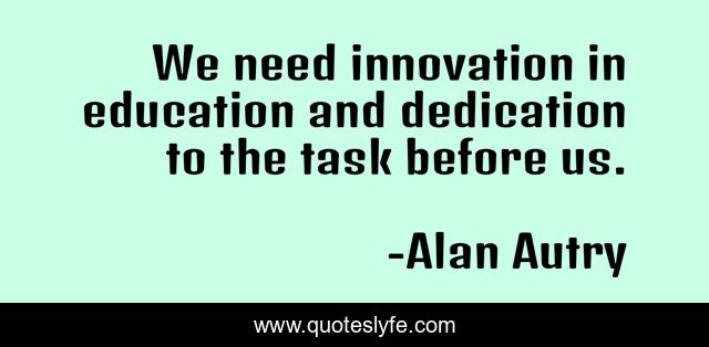 This page presents the quote "We need innovation in education and dedication to the task before us.". Author of this quote is Alan Autry. This quote is about dedication, need, innovation,.
