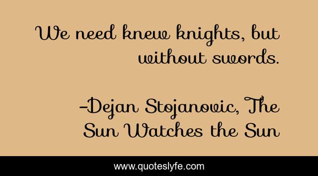 "Dejan Stojanovic, The Sun Watches the Sun Quotes." Quoteslyfe.com, 2025. Fri. 05 Dec. 2025. <https://www.quoteslyfe.com/quote/We-need-knew-knights-but-without-swords-112409>.