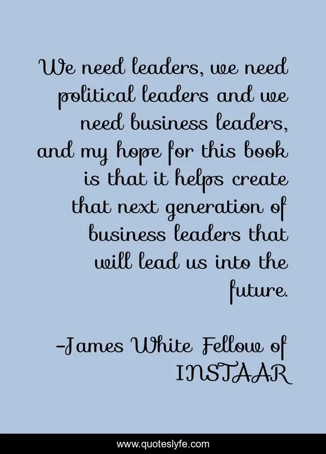 "James White Fellow of INSTAAR Quotes." Quoteslyfe.com, 2025. Sun. 07 Dec. 2025. <https://www.quoteslyfe.com/quote/We-need-leaders-we-need-political-leaders-128874>.