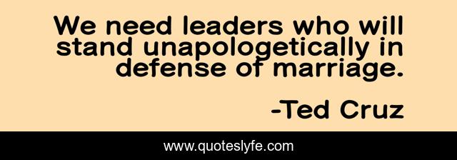 This page presents the quote "We need leaders who will stand unapologetically in defense of marriage.". Author of this quote is Ted Cruz. This quote is about need, stand, leaders,.