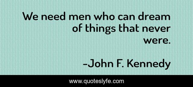 This page presents the quote "We need men who can dream of things that never were.". Author of this quote is John F. Kennedy. .