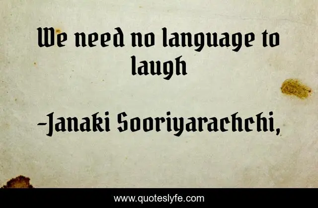 "Janaki Sooriyarachchi, චන්දු තමී Quotes." Quoteslyfe.com, 2025. Fri. 05 Dec. 2025. <https://www.quoteslyfe.com/quote/We-need-no-language-to-laugh-37327>.